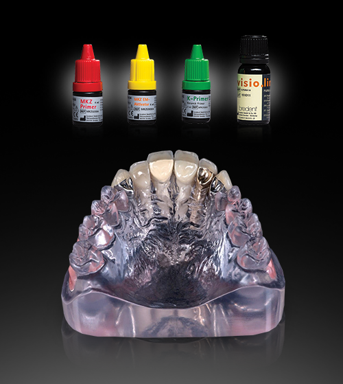 Bond.Lign – the unique bonding system for permanent and reliable bonding of all Visio.Lign system components and composites to all standard framework materials, such as NPM, HIPC (PMMA/composite), BioHPP (PEEK), zirconia, PM and titanium.